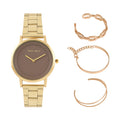 Contemporary meets classic. Our Deandra Gold Watch Bracelet Stack will take your style-quotient to the next level. This stack features a combination of our Amsterdam Taupe Dial Watch and a set of 3 bracelets. Style this statement piece with either a blazer or a cocktail dress and it will give you nothing but pure elegance and glamour.