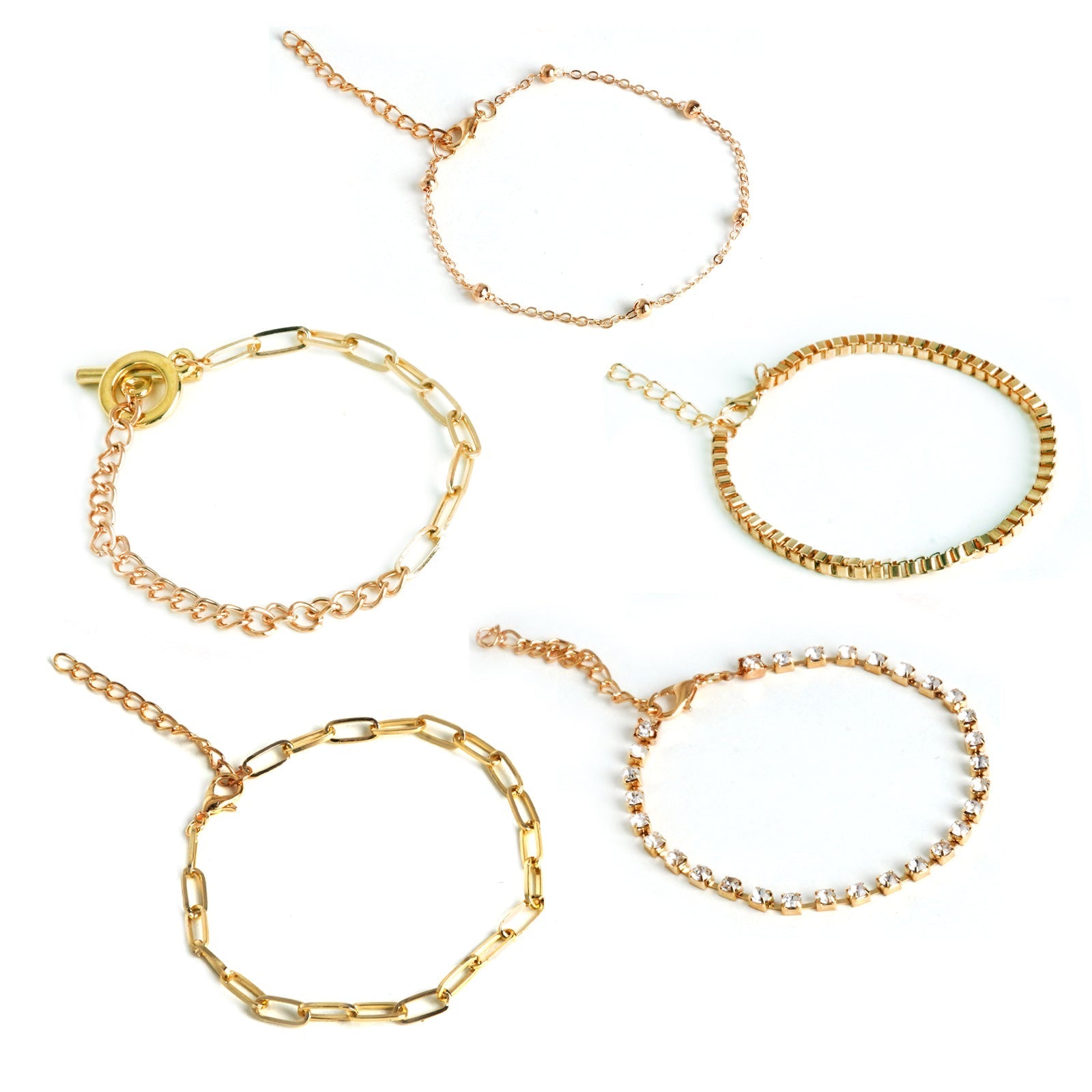 Toggle Gold Chain Set of 5 Bracelets |
